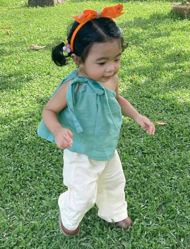 Amelia Teal Top and Mary Pants in Cream Set