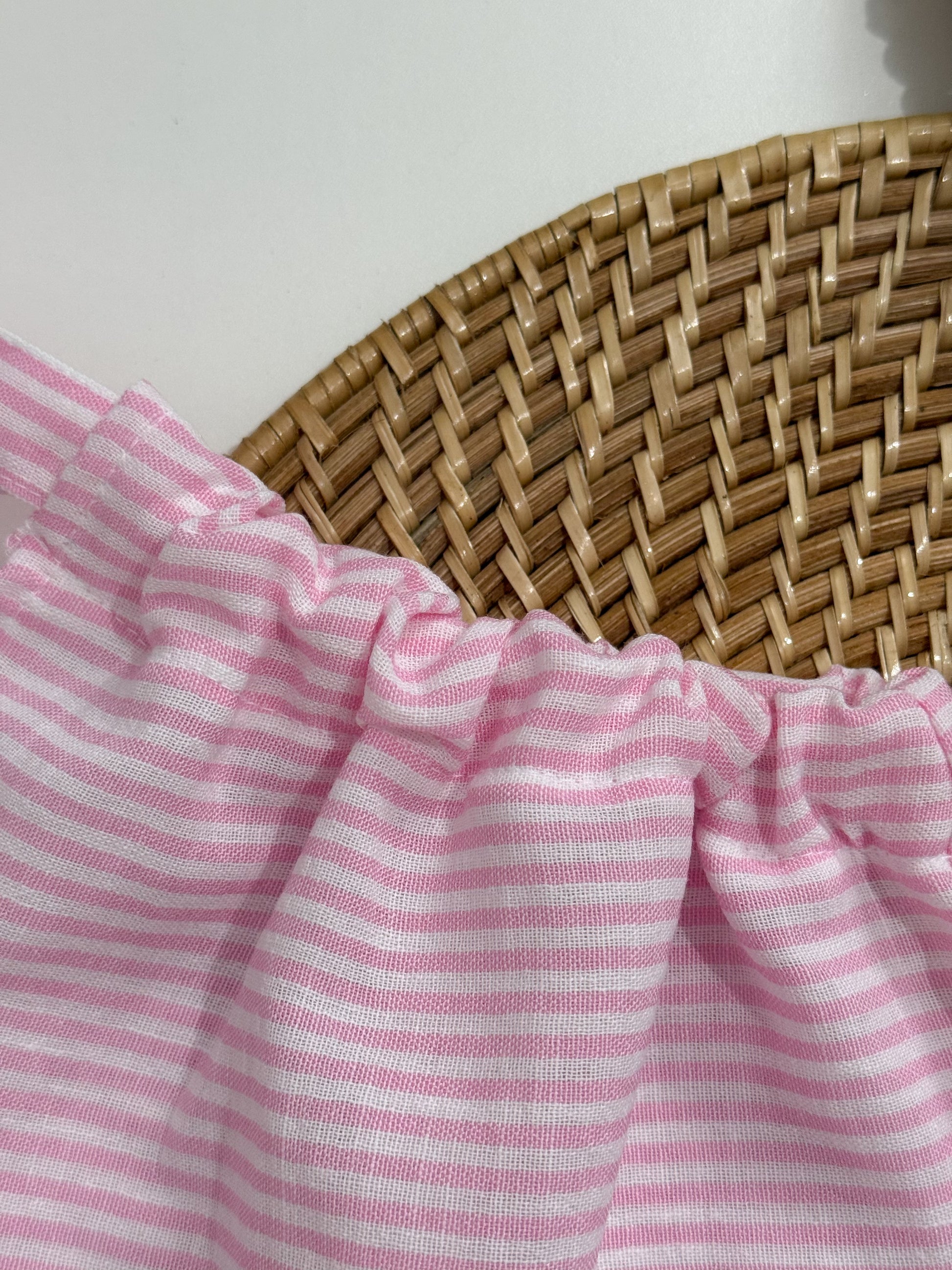 Amelia Top and Mary Pants Linen Stripes in Pink Set